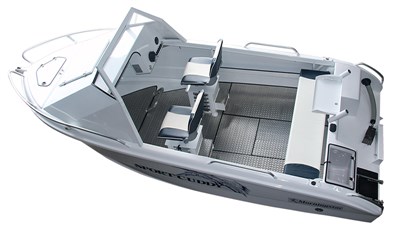 Aluminium rod holders, bait board, live bait tank, side pockets, and a swim